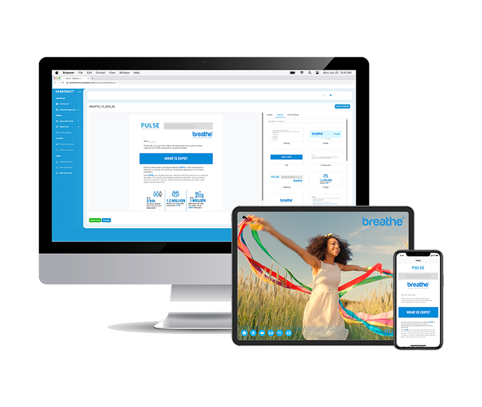 La solución Heartbeat™ Veeva Content Authoring de PULSE proporciona una plataforma intuitiva, adaptable y escalable que facilita a todos los miembros de su organización la creación y publicación de contenido CLM compatible con Veeva. Diseñado para ser utilizado con facilidad, sus equipos pueden crear, editar, localizar y publicar el contenido de Veeva CLM en tiempo real con solo un botón.